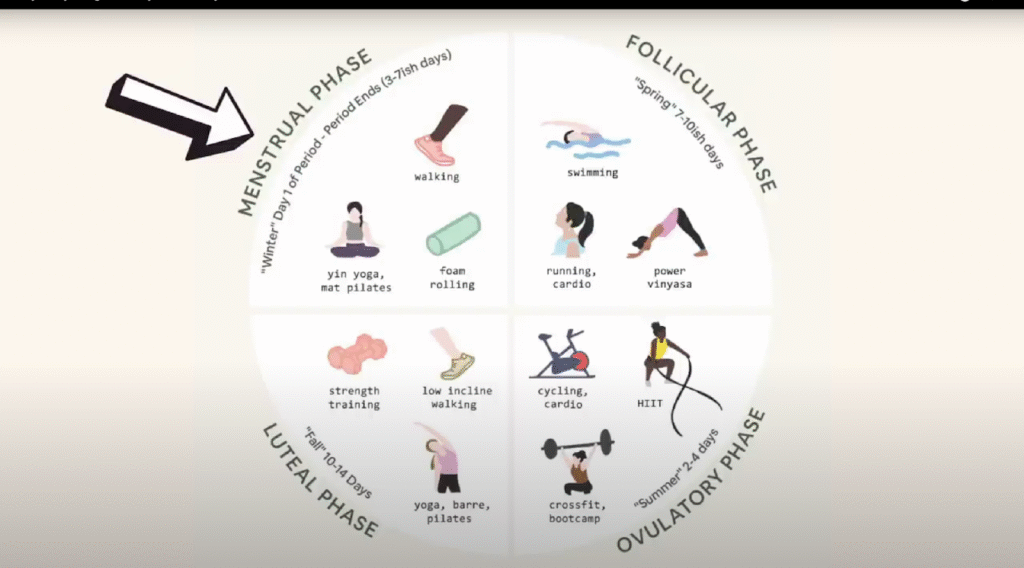 - Try cardio or strength training during the follicular phase.